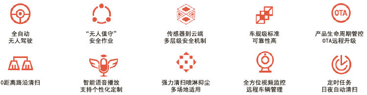 全自动安全无人驾驶、精准环境感知、自动路径规划、自主避障、自动充电、自动加/排水、污水自动过滤等功能;洗地/尘推贴边清洁、超大水箱超长续航、快速上手极简交互;可轻松