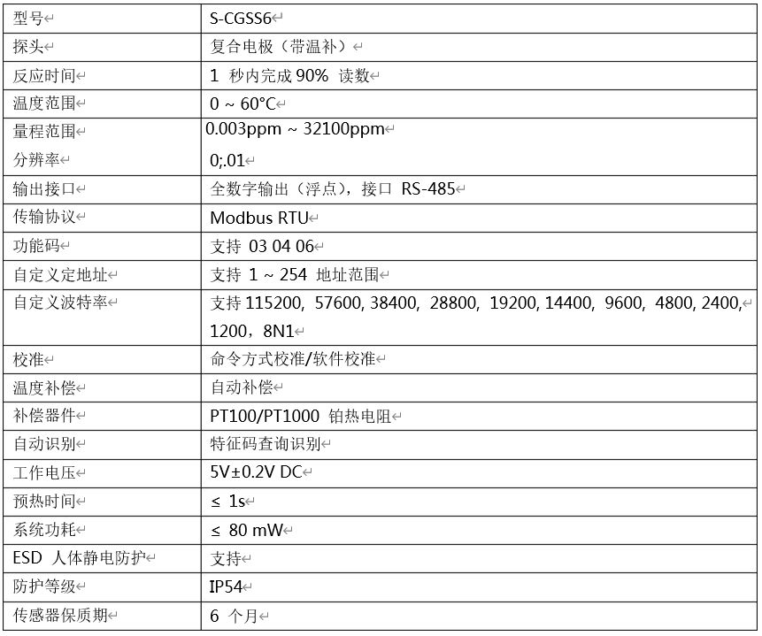 智能数字传感器采用高精度硫离子电极, RS-485 接口输出,支持标准 Modbus RTU 工业数据总线协议,能够完成硫离子浓度数据采集、校准及自动温度补偿等功能,用户可自定义查询子地址