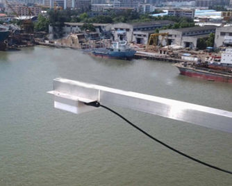 2) 构建悬臂等辅助设施,以支撑水位计悬于水面之上。