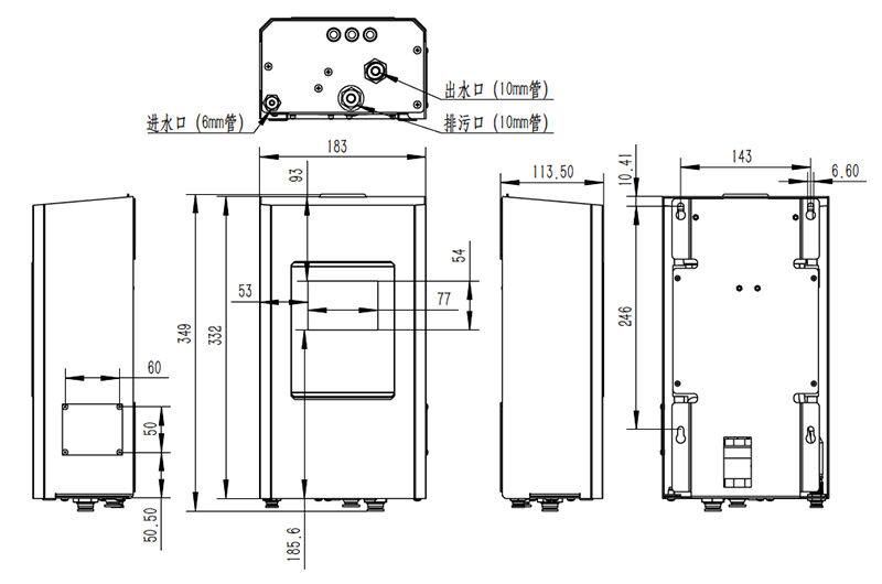 | 进出水接口 | 进水口:6mm软管;出水口和排污口:10mm软管 |