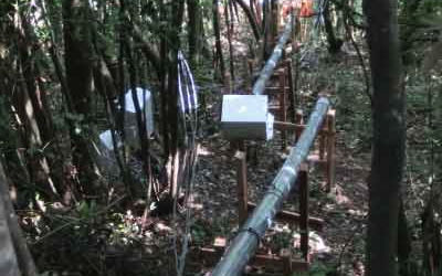 可以在现场显示随时间变化的图表的引伸计。这是地面引伸计,记录仪顶部标配有背光液晶屏。测量数据可以在现场立即以图表形式显示。彻底的省电设计允许使用市售锂电池进行长期