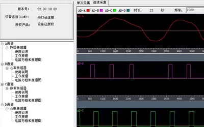 信号处理单元:集成低噪声放大电路、多阶滤波模块、16bit AD转换模块,对采集到的原始生理信号进行放大、降噪、基线校正、幅度调整处理,有效消除工频干扰、肌电干扰、环境噪声等影响,确保信号质量;支持采样频率100Hz~200KHz无级自定义设置,可通过软件灵活调整,适配不同生理信号的采集特性;参考电压稳定在5V,为整个采集系统提供稳定供电,保障设备长期稳定运行。